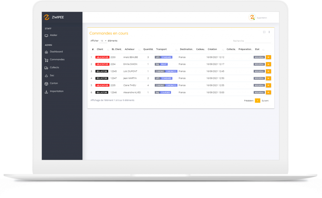 Gérez vos commandes en temps réel depuis la collecte, chez vous, jusqu’à l’expédition chez vos